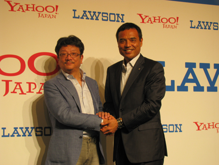 |           | トップページ > eコマースニュース ヤフー、ローソンと提携 新サイト〈ロッピー〉開設 ヤフー(本社東京)は6月9日、ローソン(本社東京)と提携し ネットと店舗を連携させた新サービスを行うと発表した。 ローソンとの連携でショッピング事業の活性化を図る。 ローソンはヤフーが提供する位置情報サービスなどを使い、 来店を促進していく。 8月から〈ヤフーショッピング〉で人気の商品を「ナチュラルローソン」で販売する。 第1弾として東北産の食品をコンビニ向けに商品化し、売り上げの一部を 被災地支援に役立てる。 ローソンは8月に総合ECサイト〈Loppi(ロッピー)〉を新設する。 今年5月にローソンの子会社と合併したHMVジャパンの商品を 新サイト内で展開するほか、ヤフーショッピングの商品も買えるようにする。 具体的なサイト構成については今後詰める。 〈ロッピー〉内で注文を完結させ、注文情報を出店者に通知する仕組みとなる模様。 ローソンは売り上げに応じたアフィリエイト報酬を受け取る。 掲載されるのは、ヤフーショッピング出店者の商品のみ。 ヤフーショッピングの外部連携サイトの商品は掲載されない。 ヤフーIDを使ったログインも可能にする。 ヤフーショッピングの出店者に対しては、ローソンの購買履歴などを検証する CRMサービスを提供する。 購買者情報を共有することで、ヤフー出店者の売上アップに貢献する。 12月にはスマートフォン向けアプリを配信し、時間と場所を限定した特典などを提供していく。 ヤフーの位置情報サービスでローソン店舗を紹介するサービスは 今年6月から順次実施している。 キャプ 記者会見のもよう  (左から=ヤフー・井上雅博社長、ローソン・新浪剛史社長) |